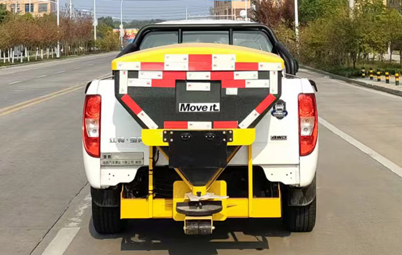 該車裝有前安裝架,裝備撒布機,選裝推雪鏟和除雪滾刷.