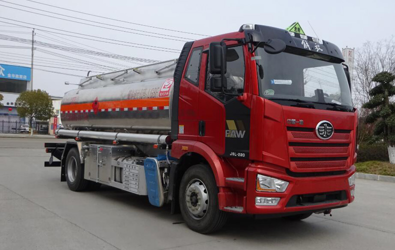 罐體總容量:13.9立方米,罐體有效容積:13.2立方米,危險貨物運輸車輛的類型:FL型車輛,介質zui大密度830千克/立方米;罐體尺寸(長×長軸×短軸)(mm)為:5700×2100×1500;僅采用4700(mm)軸距;選裝罐體兩側管廂樣式及出口箱樣式;側、后防護裝置材料材質:Q235B,側、后防護均用螺栓連接,后部防護裝置斷面尺寸(寬×高)80×150(mm),后部防護離地高度:490mm;安裝具有衛星定位功能的行駛記錄儀,僅采用子午線輪胎,前輪裝配盤式制動器,排氣消聲器及排氣管前置;安裝限速裝置,限速79km/h;安裝EBS,型號:EBS3,生產廠家:威伯科汽車控制系統(中國)有限公司;僅適用發動機對應油耗值(L/100km)為:CA4DK1-22E61(22.0),CA4DK1-18E61(22.0),CA4DK1A18E61(22.0), CA6DH1-24E61(23.9).該車后軸采用空氣懸架;轉向輪安裝爆胎應急防護裝置;選裝直接供電式ETC車載裝置;