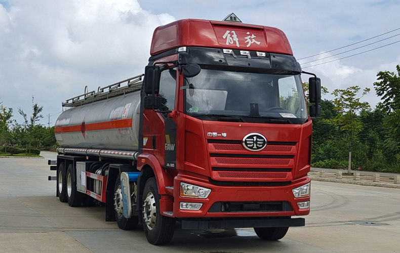 1、該車適用于危險品運輸,運送危險貨物車輛類型為:FL型。準運介質zui大密度:700千克/立方米,罐體總容量28立方米,罐體有效容積26.67立方米,罐體外形尺寸(長×寬×高)(mm):8900×2380×1660。2、側后防護材料均為Q235,螺栓連接,后防護截面尺寸120×60mm,下邊緣離地高490mm。3、僅選用排氣管前置、限速裝置(限速79km/h)、前輪pan式制動及子午線輪胎的底盤,轉向輪安裝輪胎bao胎應急防護裝置,后軸采用空氣懸架。安裝帶有衛(wèi)星定位功能的行駛記錄儀。EBS型號/生產(chǎn)廠家:EBS3/威伯科汽車控制系統(tǒng)(中國)有限公司。發(fā)動機/油耗值(L/100km)對應關系為:CA6DK1-32E61/38.16,CA6DK1-28E61/38.16 。4、選裝ETC。罐體上部選裝無上走道,第二軸、后驅動軸選裝弧形擋泥板。隨底盤選裝駕駛室。僅采用軸距1900+4500+1350mm。選裝駕駛室門把手及冀子板。