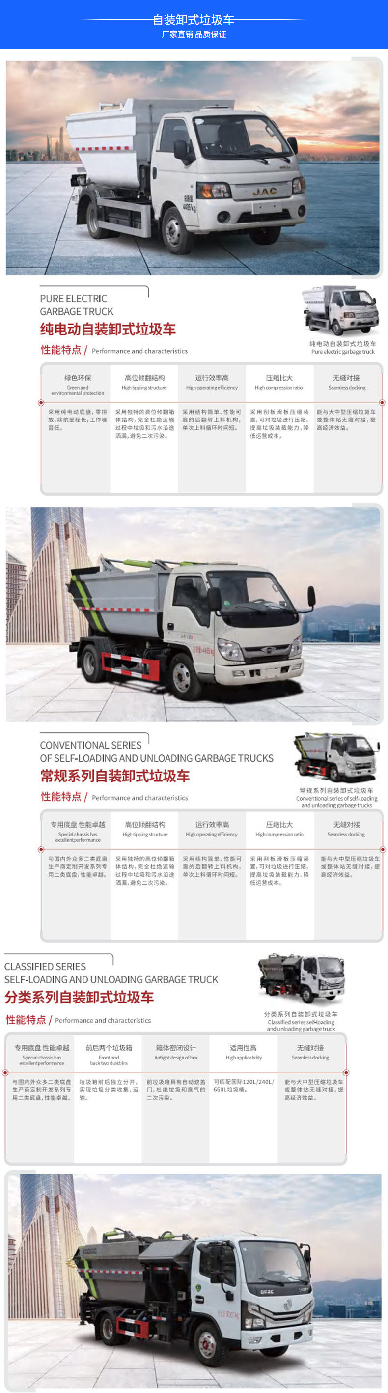 垃圾車價格_純電動垃圾車_上汽大通小型純電動自裝卸式垃圾車★13908669111★產品名稱CSC5047ZZZSHBEV型純電動自裝卸式垃圾車,采用上汽大通SH1047PCEVNZY1底盤改裝而成,該車主要專用裝置為垃圾箱、翻轉上料裝置、舉升卸料裝置、填壓機構、液壓系統等,主要用于垃圾收集清運。卸料方式為后卸式。整車美觀大方,全液壓配置多重保護能與大中型壓縮垃圾車或整體站無縫對接,提高經濟效益。更多垃圾車盡在:m.bjlzbj.com.cn