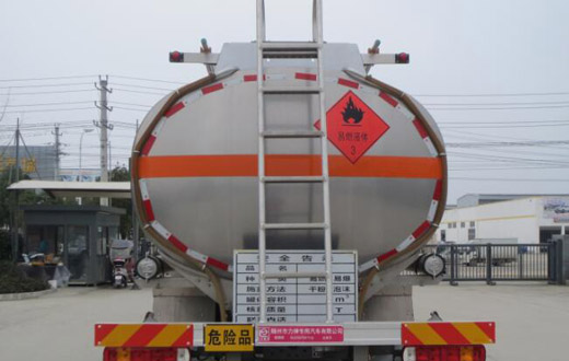 罐體有效容積:20.2立方米,危險貨物運輸車輛的類型為FL型,類項號:3;罐體尺寸(長×長軸×短軸)(mm)為:7000×2300×1600;僅采用4575+1400(mm)軸距;隨底盤選裝駕駛室,選裝工具箱樣式,選裝尾部工具箱及炮筒樣式;側、后防護裝置材料材質:Q235B,側、后防護均采用螺栓連接,后防護裝置斷面尺寸為(mm):80×150,后部防護離地高度:460mm;安裝具有衛星定位功能的行駛記錄儀,排氣管前置,安裝前輪盤式制動器和限速裝置,限速80km/h,僅采用底盤子午線輪胎;ABS系統控制器生產企業/型號為威伯科(上海)管理有限公司/4460046300;選裝EBS,EBS系統控制器生產企業/型號為威伯科(上海)管理有限公司/EBS3;發動機型號及油耗值(L/100km)為:MC07.27-60(36.6),MC07.31-60(36.6),MC07.34-60(36.6), MC09.35-60 (36.5), MC09.38-60(36.5) , MC09.35B-60(36.5) ,MC11.40-60(36.7). MC07.29-60(36.6), MC07.33-60(36.6), MC07H.29-60(36.6), MC07H.33-60(36.6), MC07H.35-60(36.6), WP9H350E62(36.6), MC11.40-61(36.7);該車后軸為采用空氣懸架.轉向輪安裝爆胎應急防護裝置;該車型可選裝ETC車載裝置;